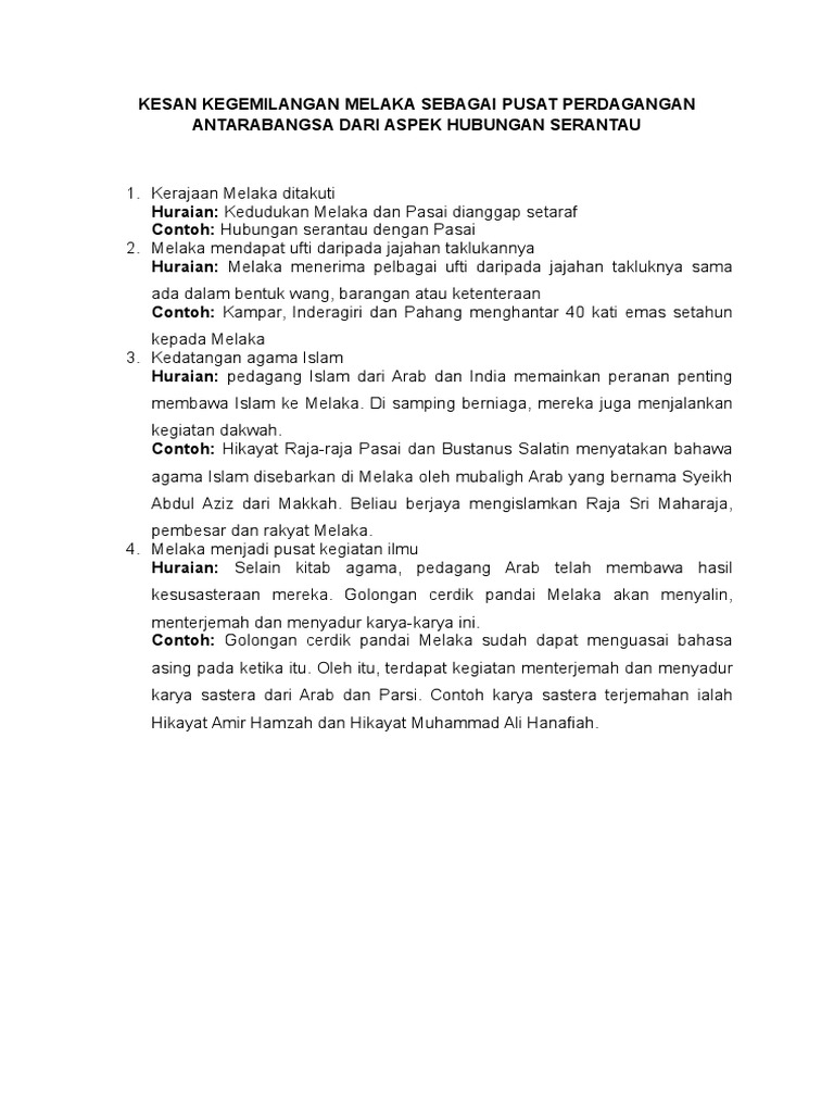 Kesan Kegemilangan Melaka Sebagai Pusat Perdagangan Antarabangsa Dari Aspek Hubungan Serantau Pdf